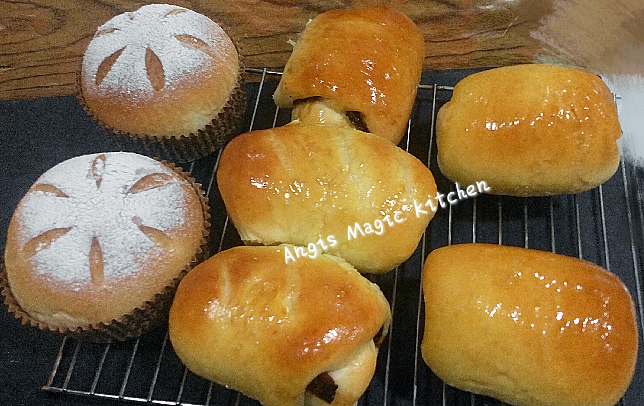 6。放进预热了的烤箱,以180度-190度烤20分钟即可,刚出炉的面包即可抹上牛油,这样就可以亮亮了哦!*温度以自己的烤箱为准哦!